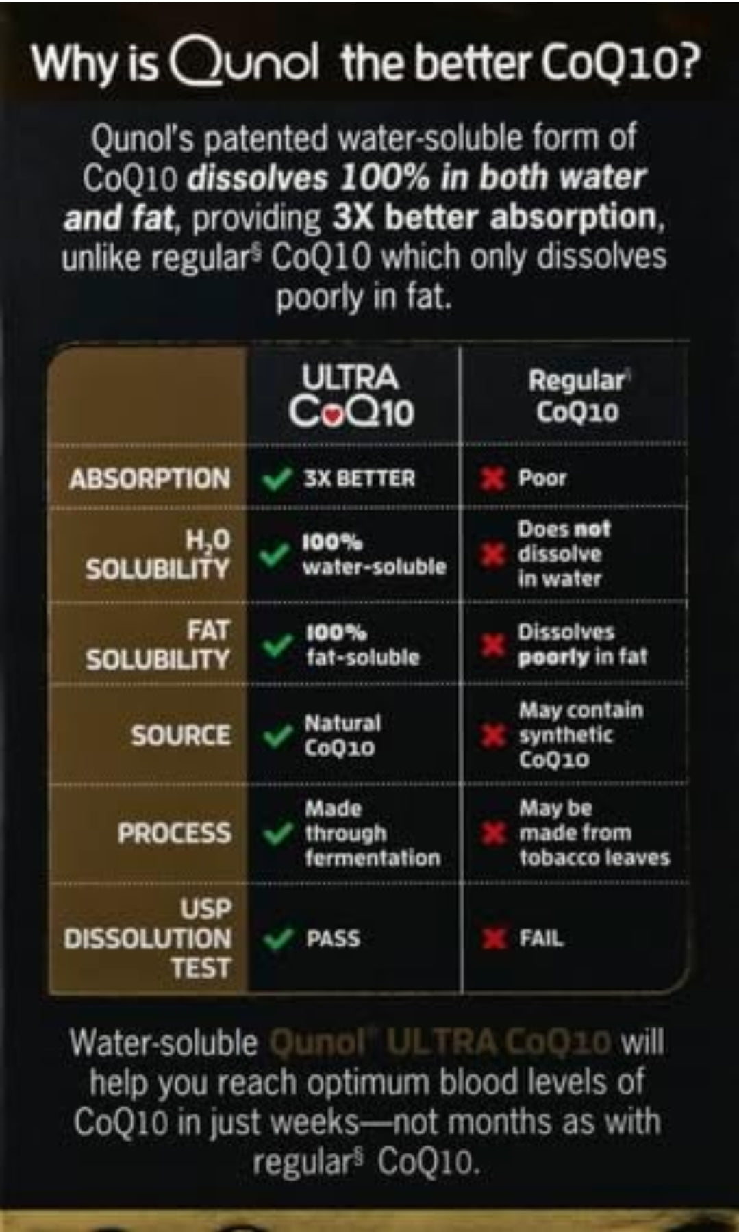 - 3X BETTER ABSORPTION THAN REGULAR CoQ10: Clinical trials have proven that no other CoQ10 supplement absorbs better than Qunol. In fact, Qunol Ultra absorbs 3X better than regular CoQ10